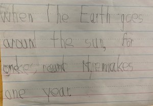 The children took turns to be “the Earth” that orbits around the sun. We learned that the Earth’s orbital path is not a perfect circle but an ellipse.